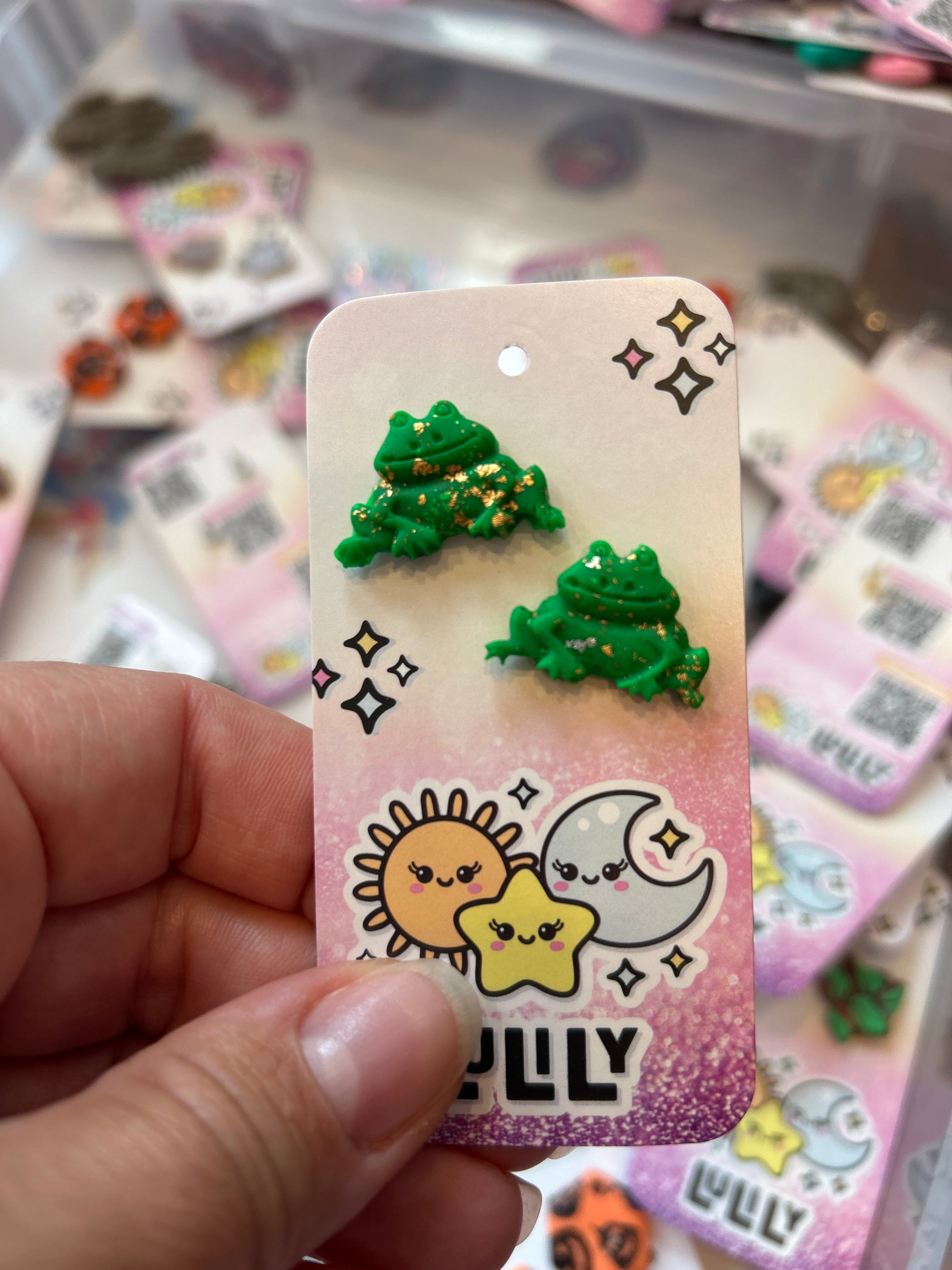 Small Green Gold Frog Stud Earrings