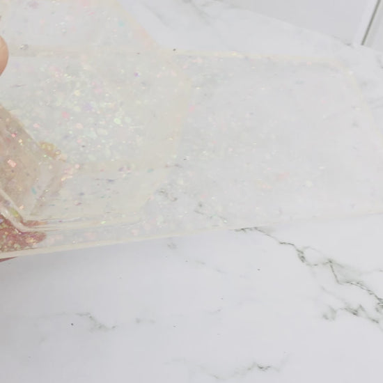 Hand-poured with clear resin and sprinkled with pastel iridescent flakes, this one-piece organizer is both functional and magical. Use it to keep your desk tidy—perfect for pens, sticky notes, paper clips, or your favorite small accessories.