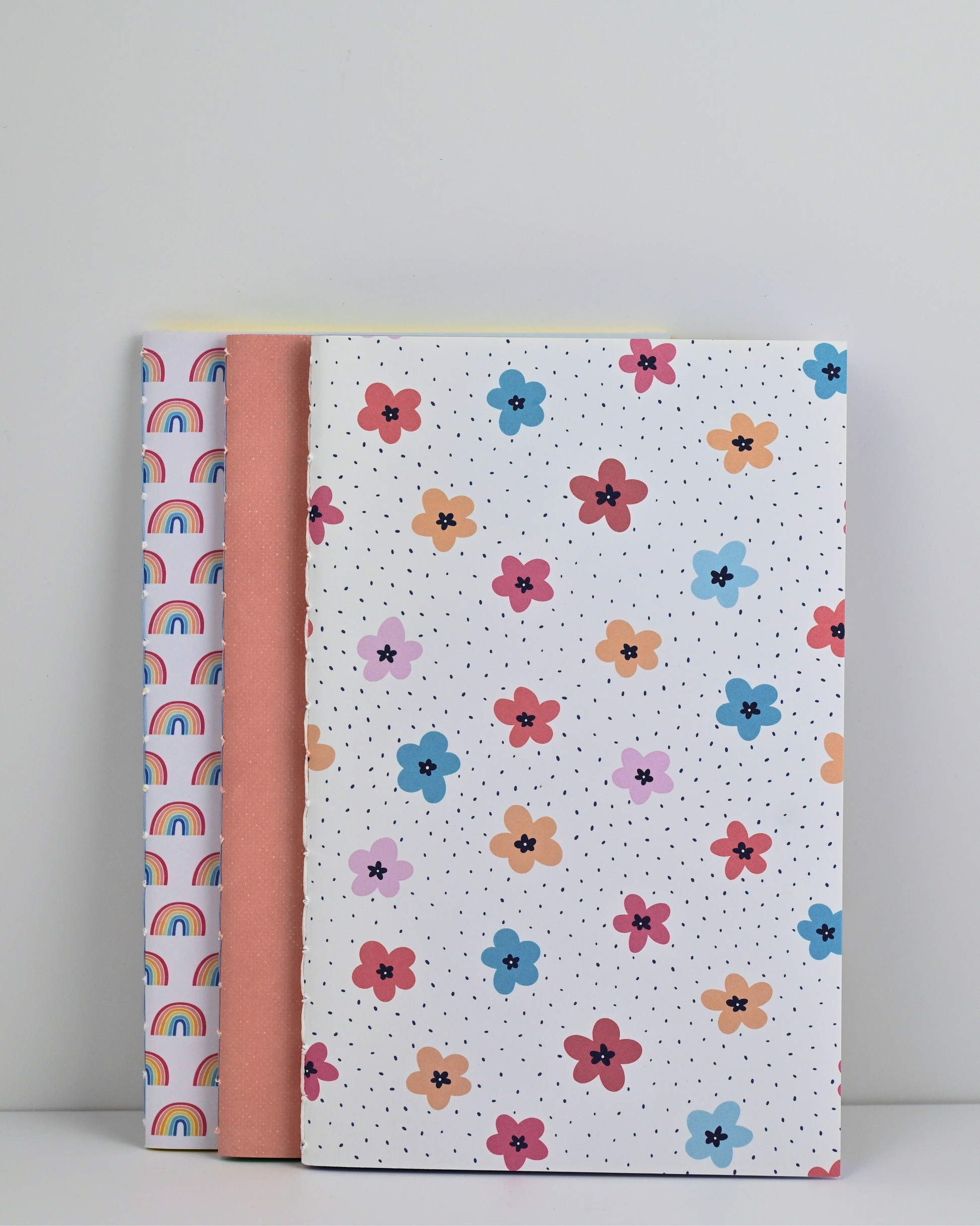 Stay organized and inspired with this playful 3-pack of notebooks! Featuring three cheerful designs—Rainbows, Flowers, and a soft Peach—the set brings a pop of color and charm to your daily notes, lists, and ideas.